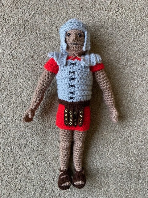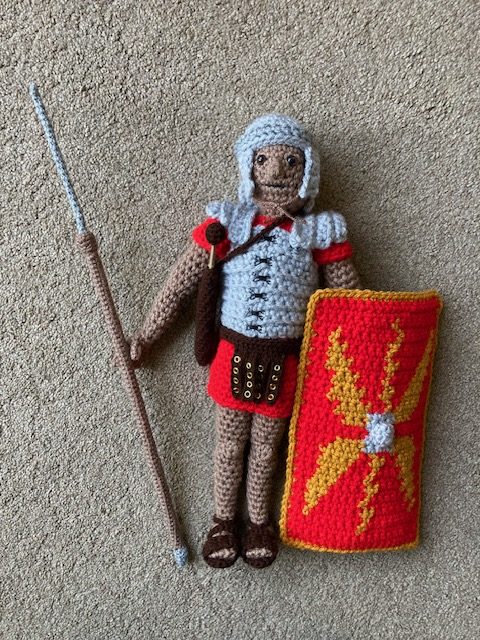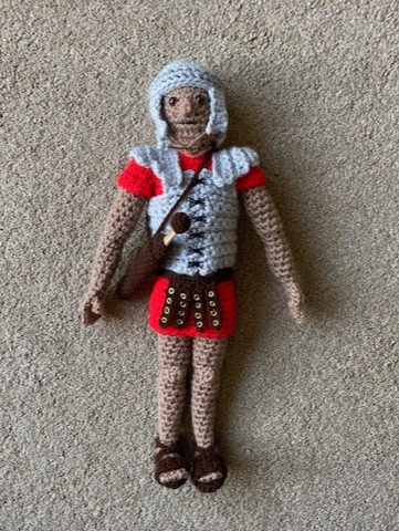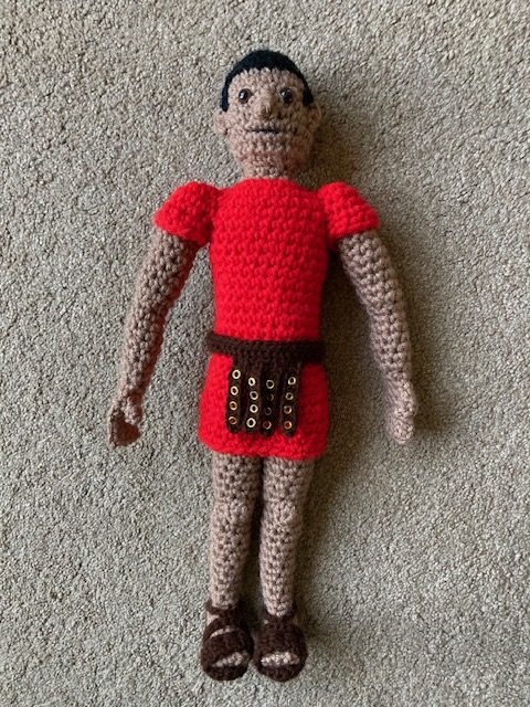 I have been asked to teach on the Romans in a Year 3/4 class, so I decided to make a Roman legionary in order to demonstrate the armour they would have worn. In order to do that, I made a man wearing a simple tunic, and then added armour, sandals, a belt, a helmet, the shield, pilum and gladius